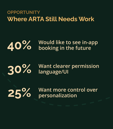 I approached ARTA as a product discovery and systems design challenge—balancing user needs, technical feasibility, and long-term scalability.