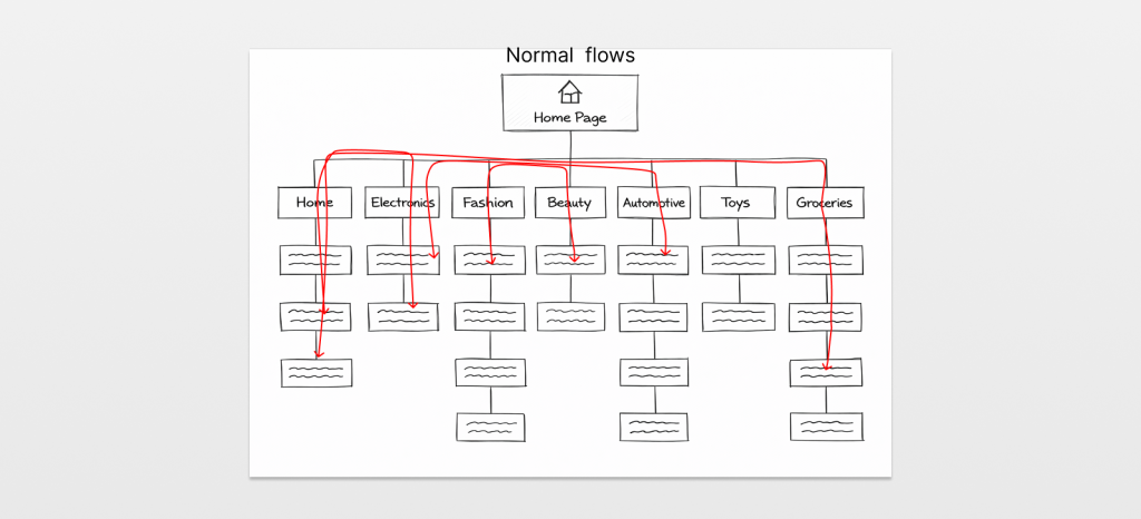 During my time at Walmart, I spent years observing how customers navigated category and product listing pages—the digital equivalent of store aisles. These experiences were highly structured but often acted as dead ends, requiring customers to restart their journey to explore adjacent categories.